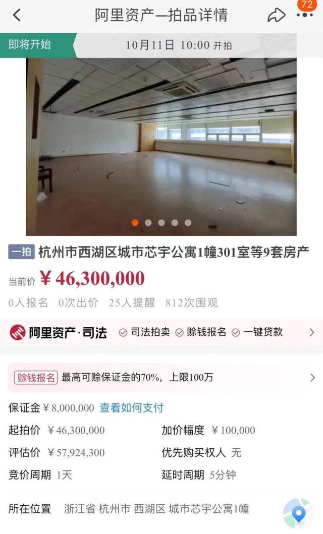 杭州老牌房企金都名下城市芯宇公寓总共有96套房产即将被司法拍卖